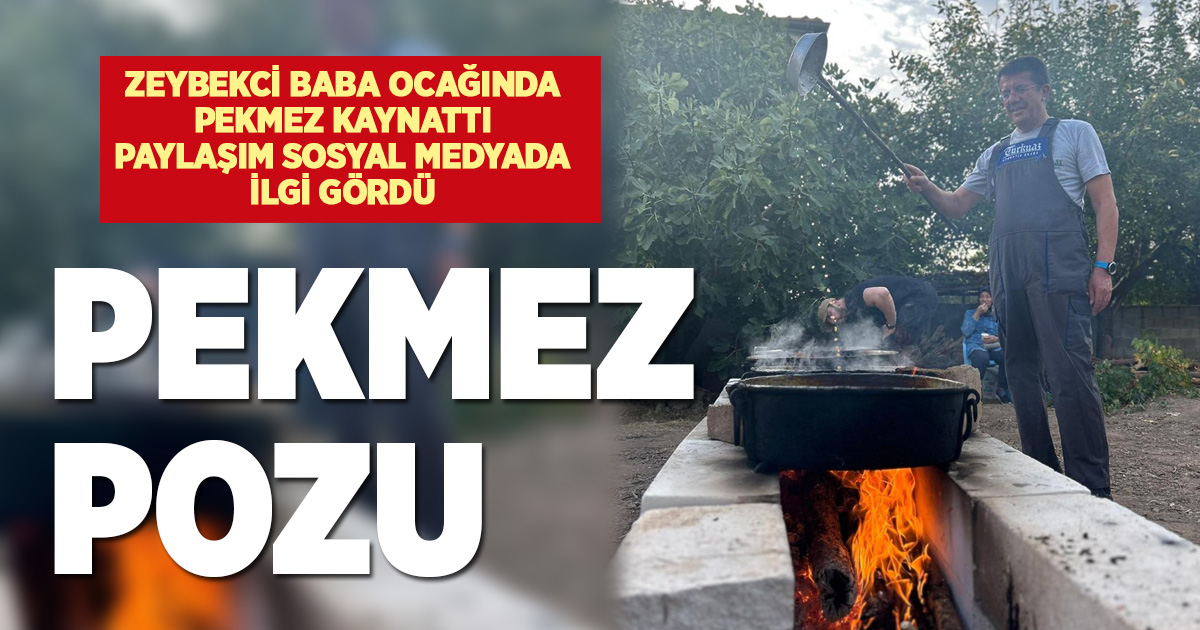 Pekmez kaynatmayı sosyal medya hesabından paylaşan Zeybekci, “Atamızdan yadigar kalan geleneksel pekmez kaynatmayı evlatlarımıza aktarıyoruz. Bereketli olsun.” ifadelerinde bulundu.