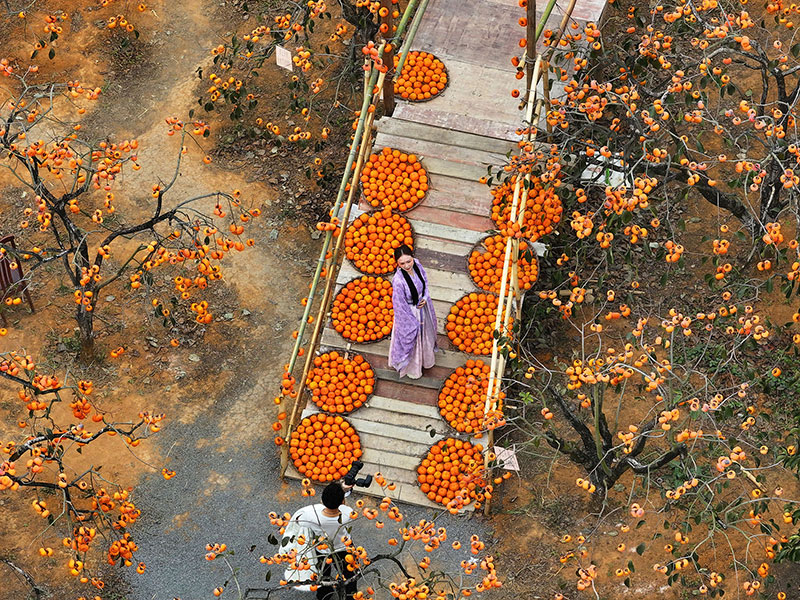 Denizli’nin geniş cennet elması bahçelerinin bir benzeri de Çin’in güneyindeki Gongcheng Yao Özerk Bölgesi’ndeki Hongyan Köyü’nde var. Çinlilerin “altın hurma” dedikleri cennet elması bahçeleri yılın bu mevsimlerinde hasat işçilerinden çok turistleri ağırlıyor.